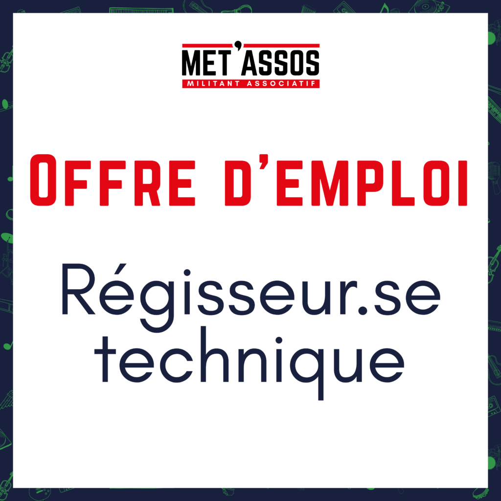 Met’Assos recherche un.e régisseur.se technique du spectacle vivant et de l’évènementiel notamment pour la gestion de la Salle de la ...